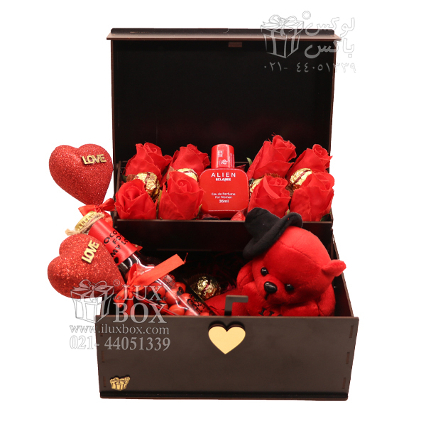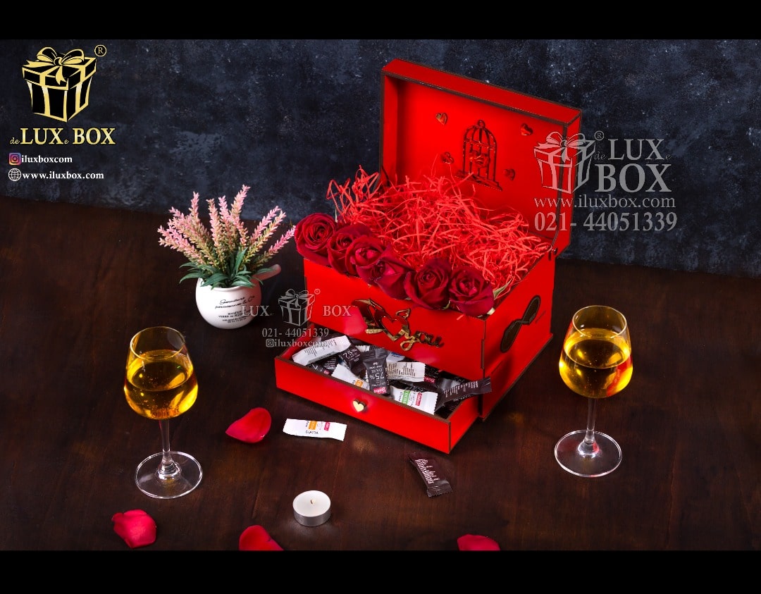 👈باکس هدیه گل شکلات چوبی ولنتاین لوکس باکس کد LB281